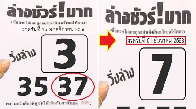 หวยเด็ด หวยซองล่างชัว ร์!มาก งวดวันที่ 01/12/68