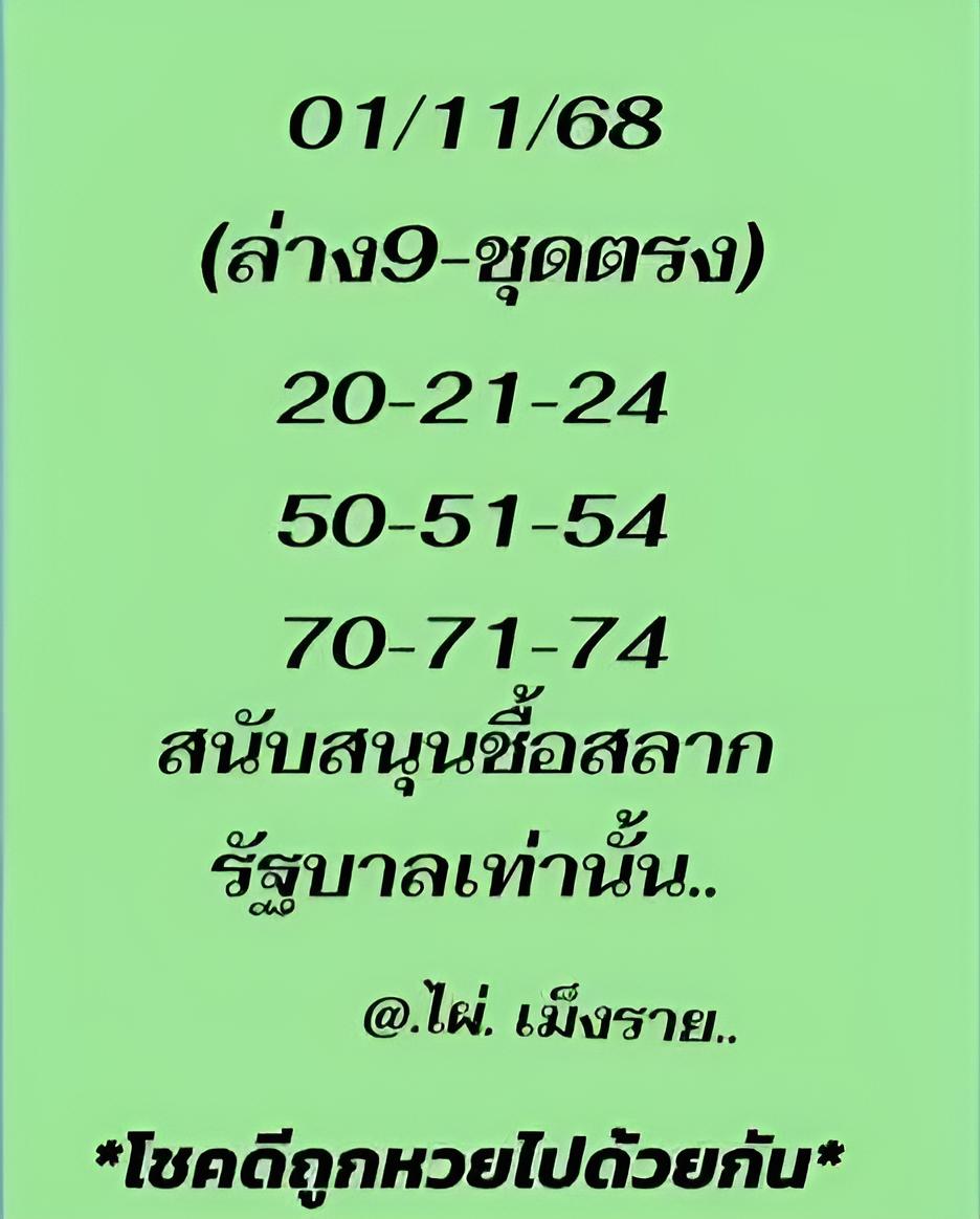 We would like to thank the original sources for providing these lucky number tips. Our website supports only legal lotteries in accordance with Thai law. Stay tuned for updates in the next draw!